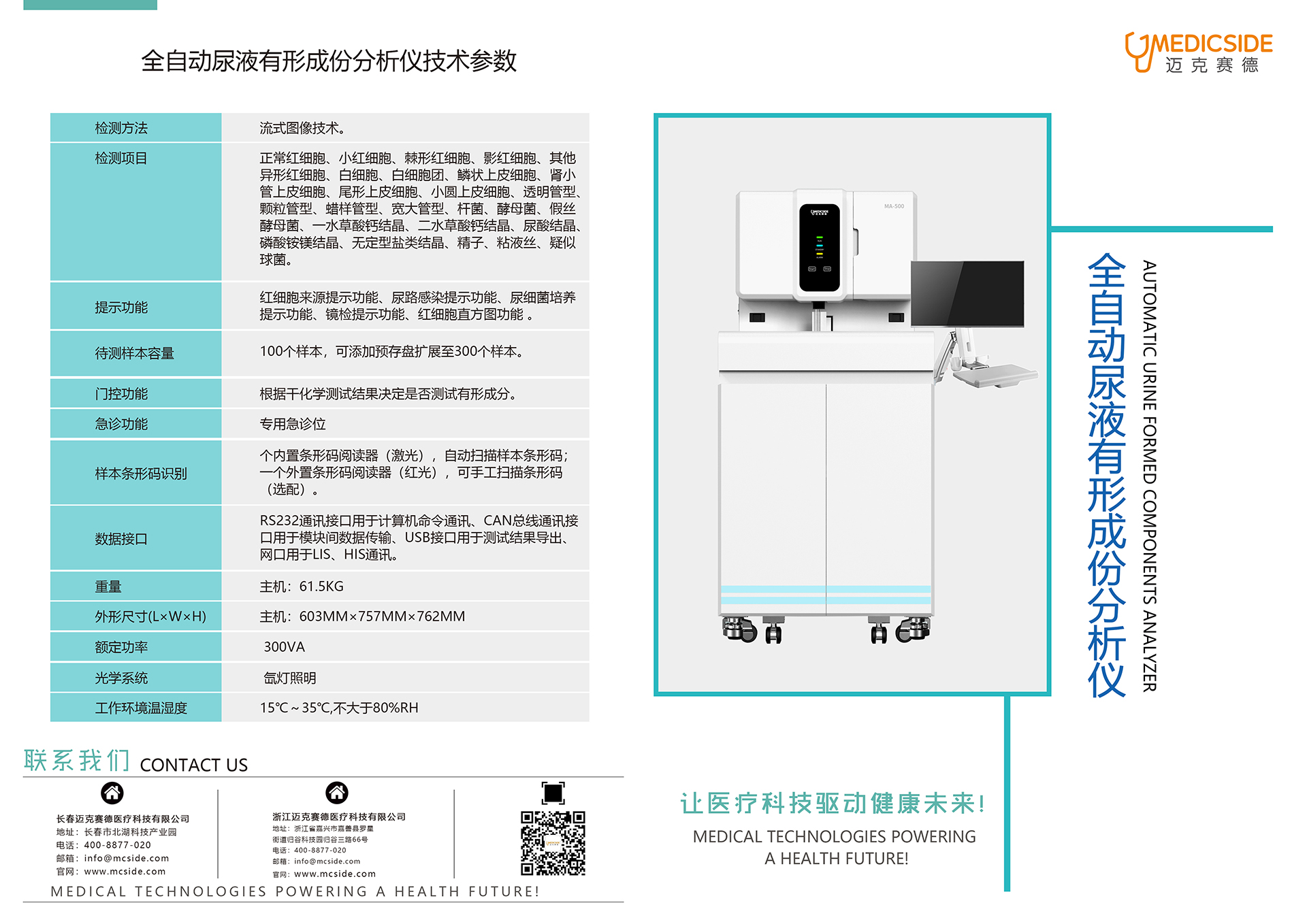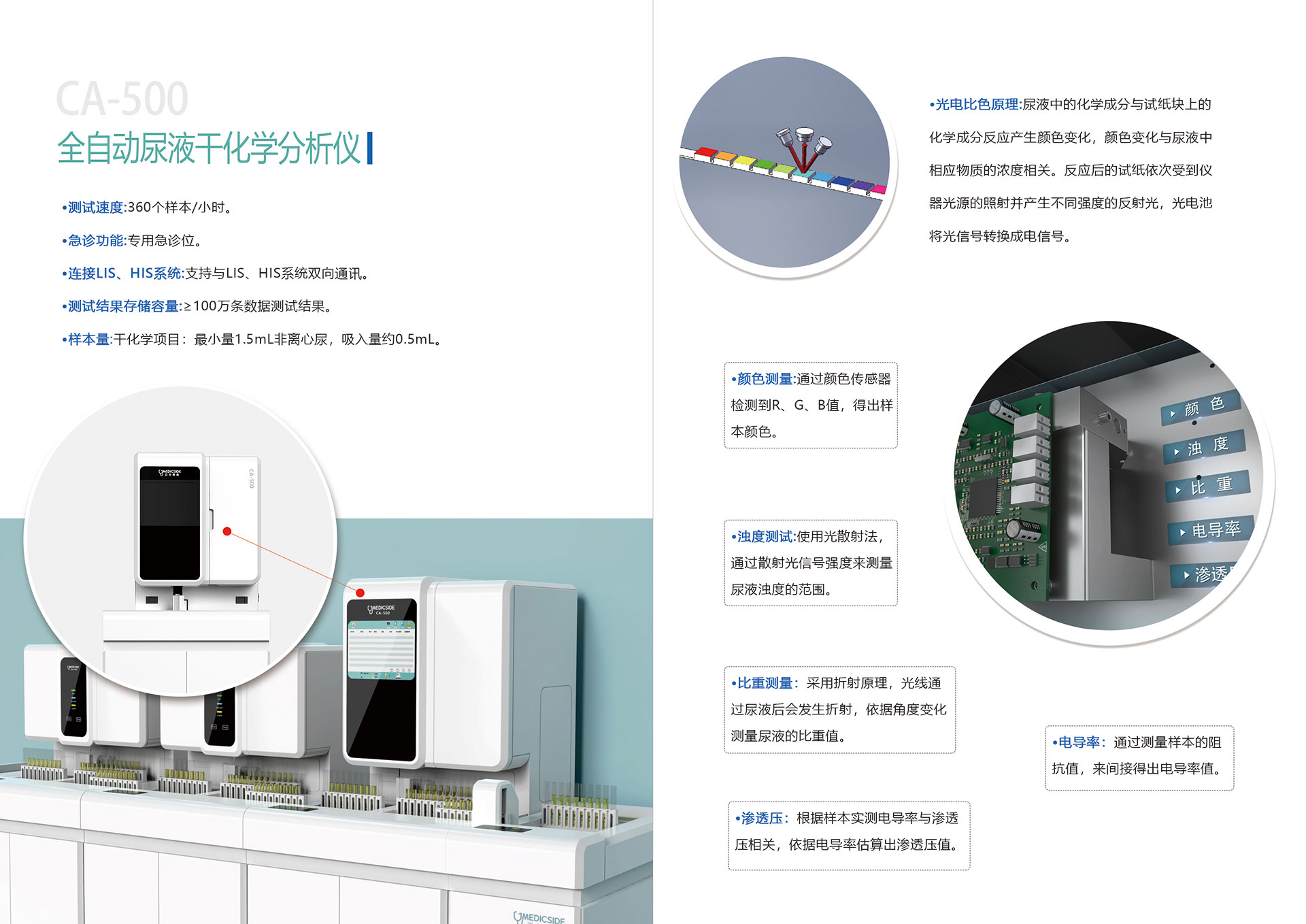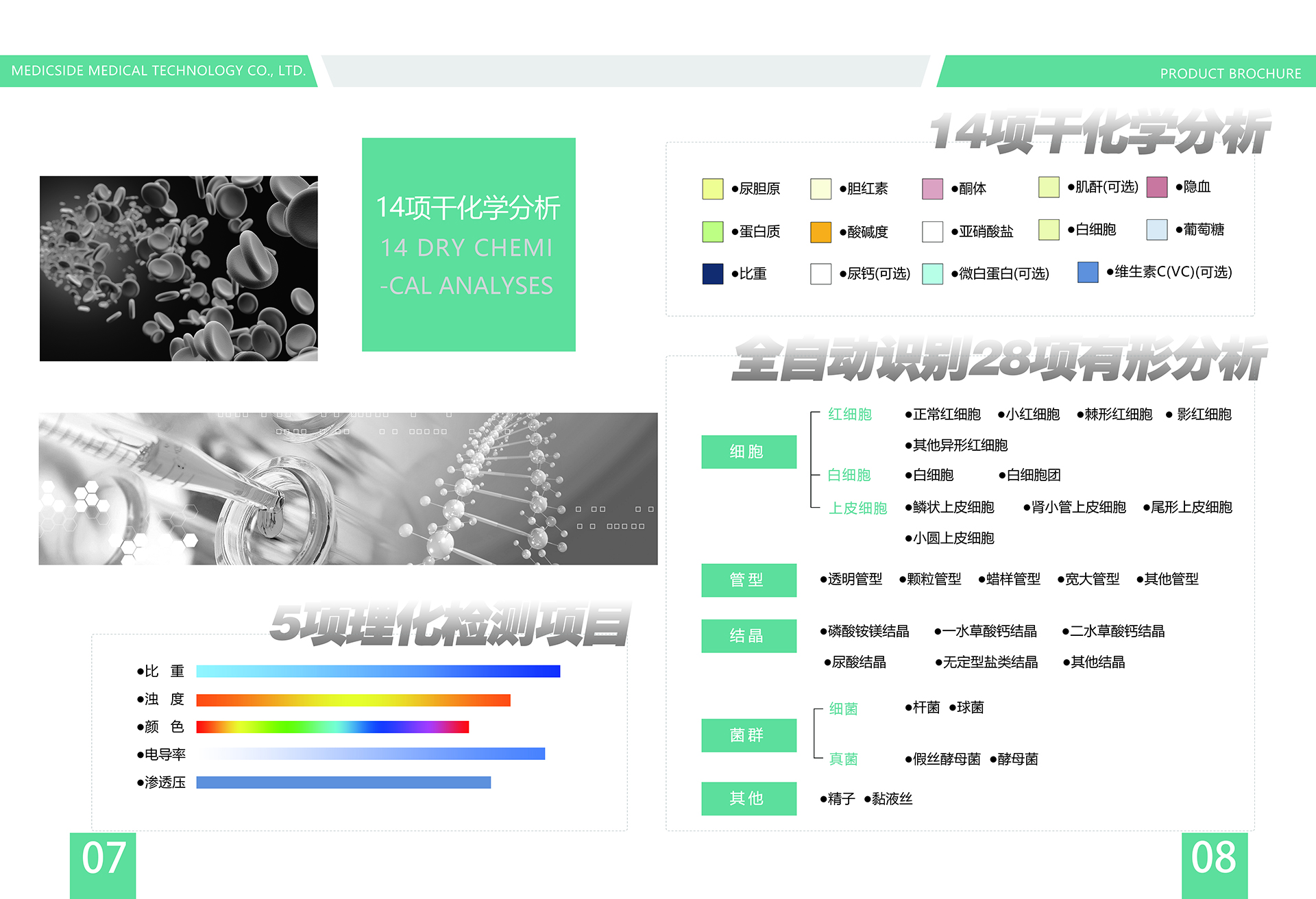 •检测项目:14项干化学+5项理化指标(可测电导率)